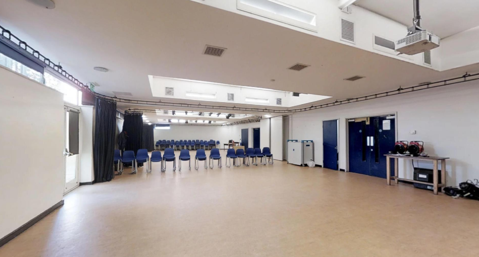 Holy Family Wiseman site's drama studio features high ceilings, black out curtains, and lighting for the optimal atmosphere. There is also a floor to ceiling mirrored wall. The space would work perfectly for a theatre group using multiple facilities, or for any type of rehearsals. There is also a sound proof divider that can be put across the room, meaning that the drama studio can be hired as a whole or by halves.