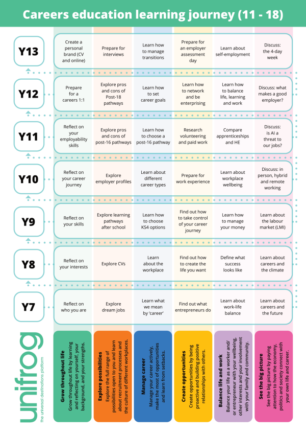 These activities are mapped in a termly schedule for each year group shared with the Year Leaders and dedicated Unifrog teachers who oversee the completion of the tasks during careers lessons or their PSHCE scheme of work.