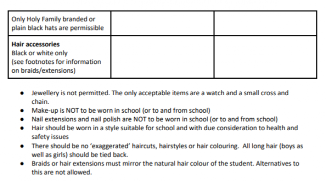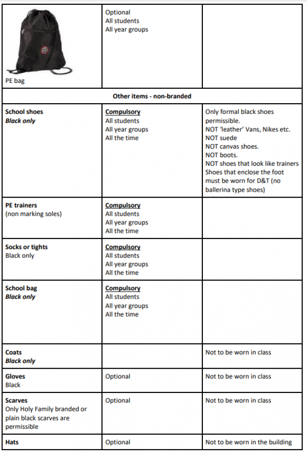 Holy Family School Uniform Information