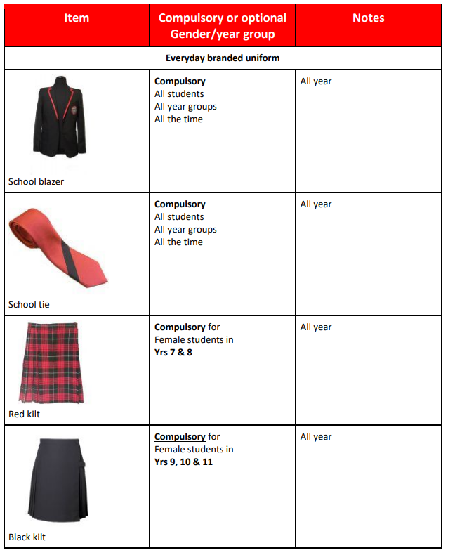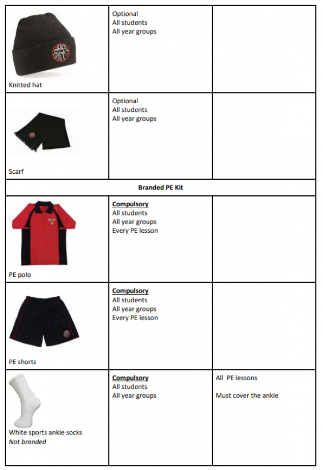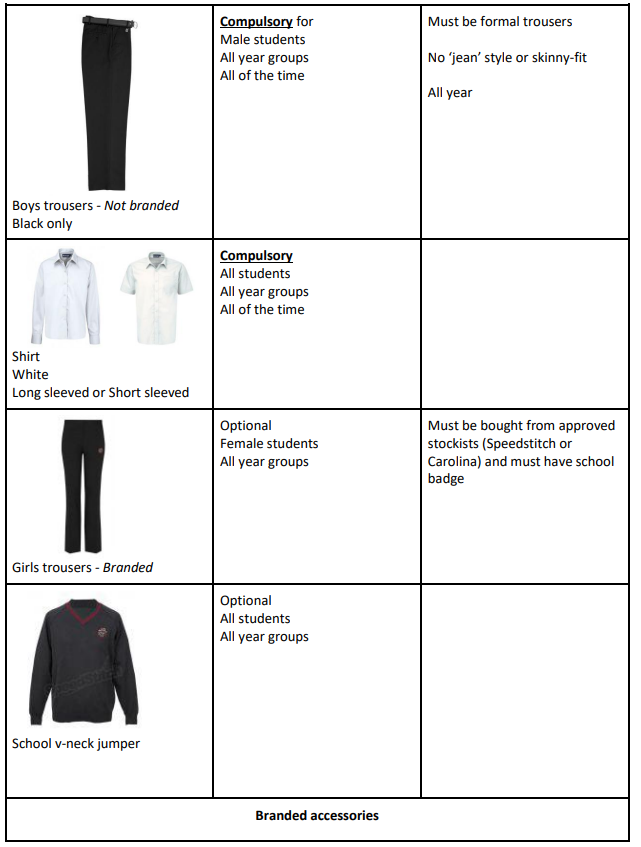 Students who are not wearing the correct uniform will be sent home to change, please see the uniform guide below.