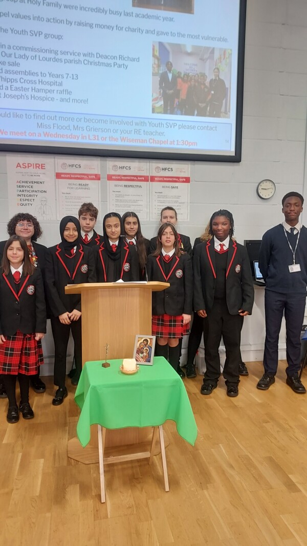 The SVP team organised the Senior Citizens’ Christmas Party, led a Mass for the Anointing of the Sick, and visited care homes. During Lent, our Big CAFOD Walk saw Years 7 and 8 walk 5K to raise funds, while Sixth Form students hosted a “soup and roll” lunch. Over 300 Easter eggs were delivered to St Joseph’s Hospice.