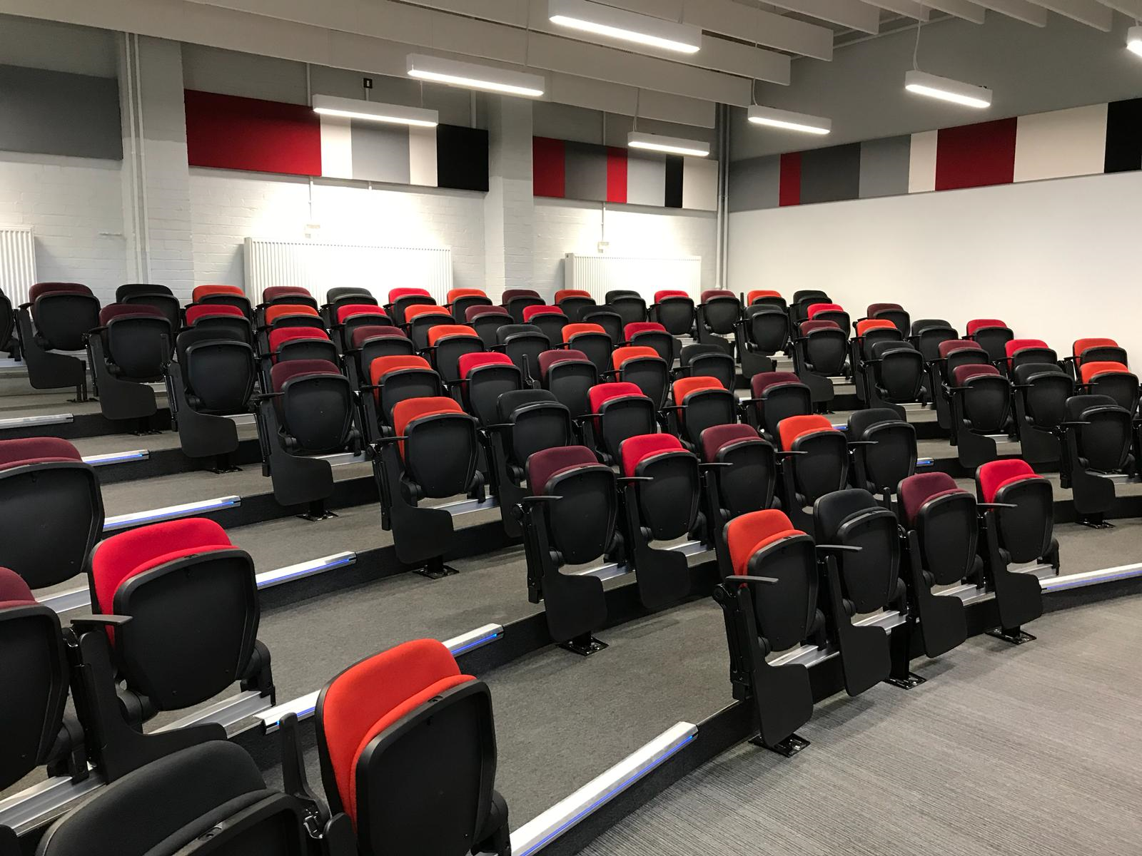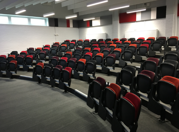 The lecture theatre on the Wiseman Site is a wonderful space for meetings, formal gatherings and corporate events. It has tiered seating and it is carpeted with capacity for 101 people seated. The lecture theatre has a large display screen and excellent sound system that can be connected for presentations.